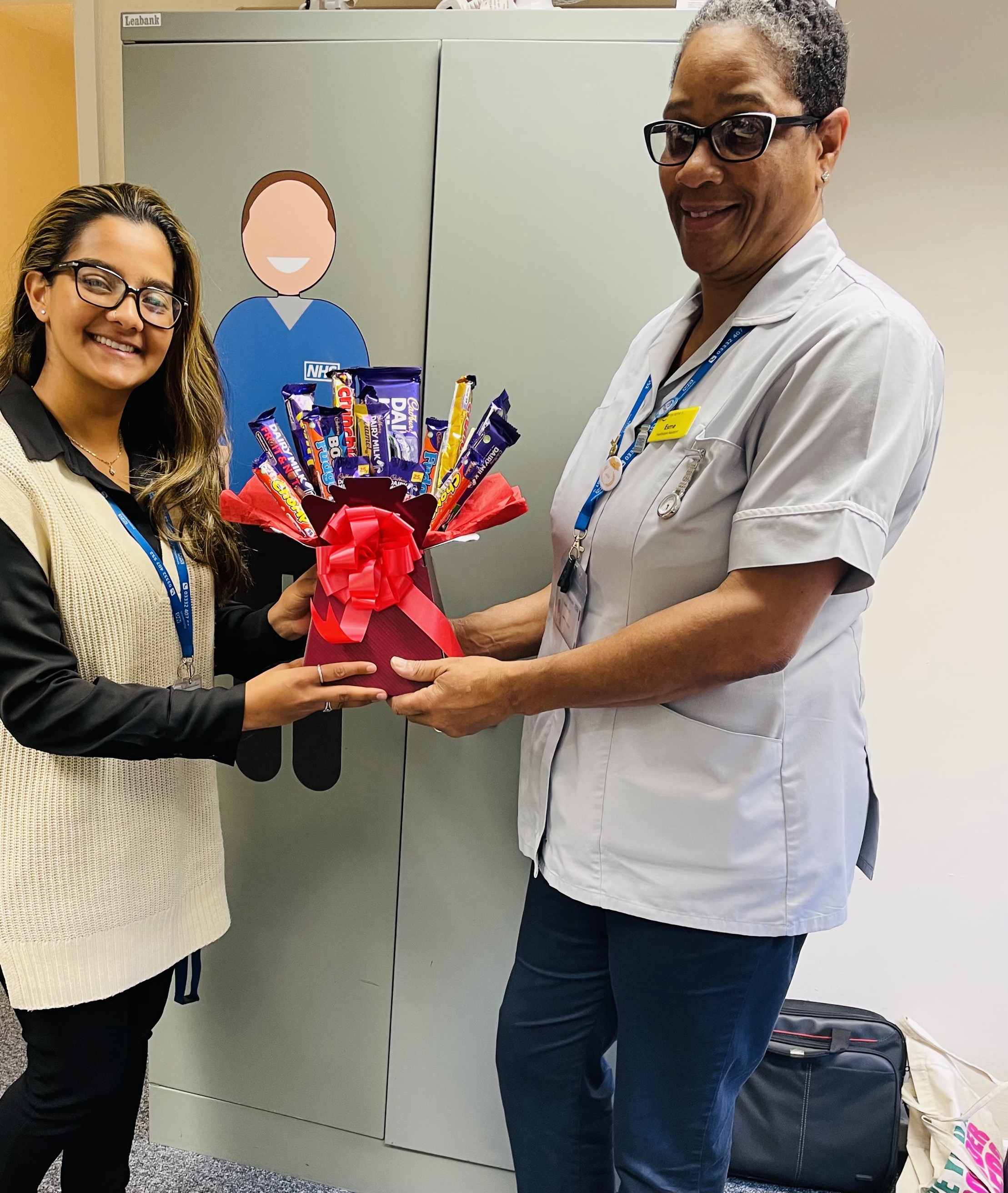 We are pleased to announce that Esme Latham is our second lucky winner of the chocolate Christmas hamper competition that we ran in December. Esme has been working at High Wycombe Hospital via NHS Professionals as a Healthcare Assistant. Tasha Saphie-Long, one of our Trust Services Partners met with her to present her prize. Congratulations Esme!